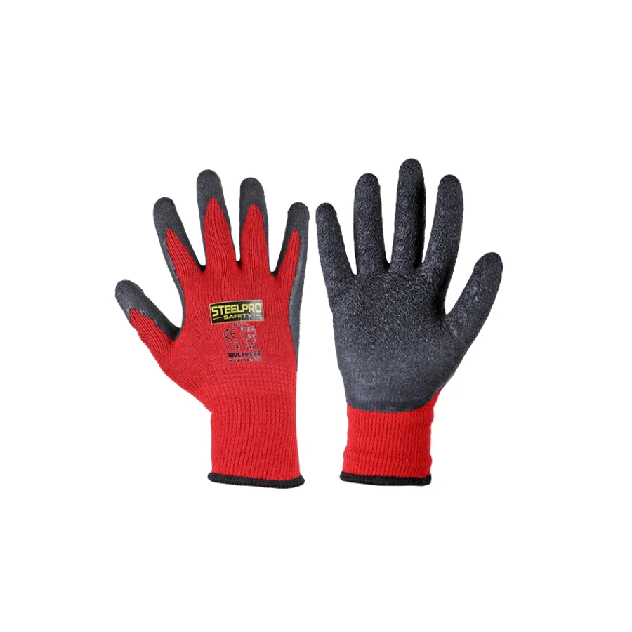 GUANTE MULTIFLEX LATEX STEELPRO, son tejidos con recubrimientos sintéticos, combinando la mejor relación entre peso, destreza, durabilidad, flexibilidad, durabilidad, confort y optima adaptabilidad a la mano de los colaboradores.