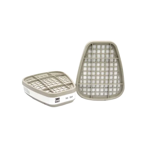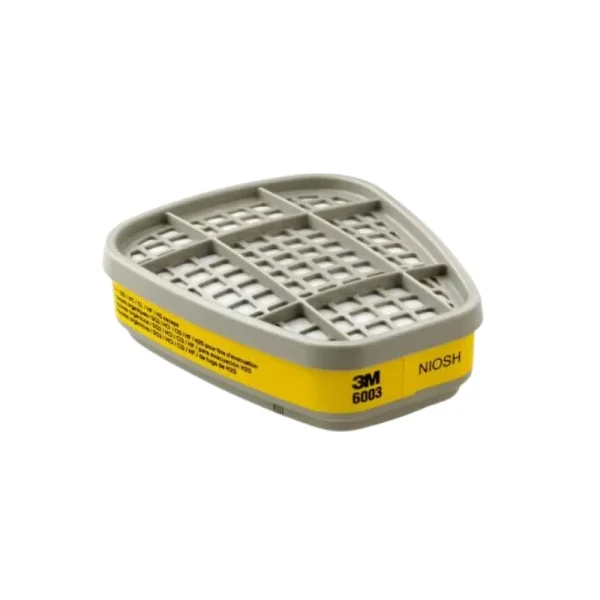 Cartucho para respirador 3M 6001 con elemento filtrante a base de carbón activado, efectivo contra vapores orgánicos, con aplicaciones para petroquímica, trabajos con pinturas disolventes y pesticidas.